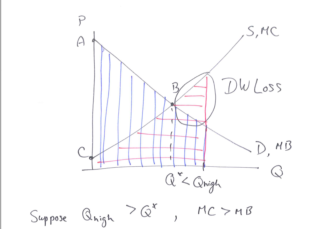 the **loss in producer and consumer surplus **due to an inefficient level of production. (deviations from competitive equilibrium qty)
