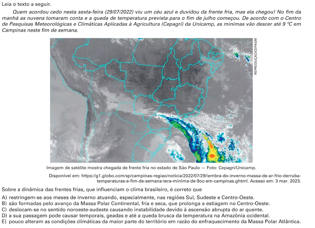 Falso, embora ocorra com mais intensidade nos meses de inverno, a massa de ar polar atlântica não é restrita aos meses de inverno no Brasil, podendo assim ocorrer em qualquer época do ano.