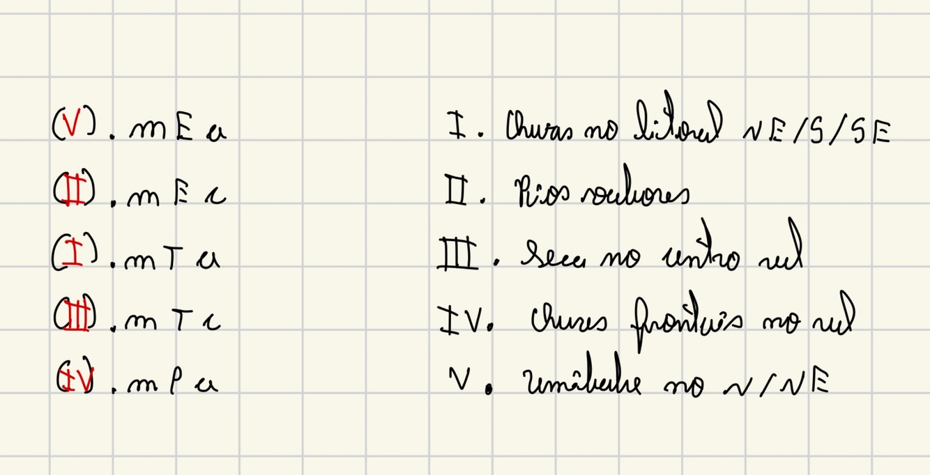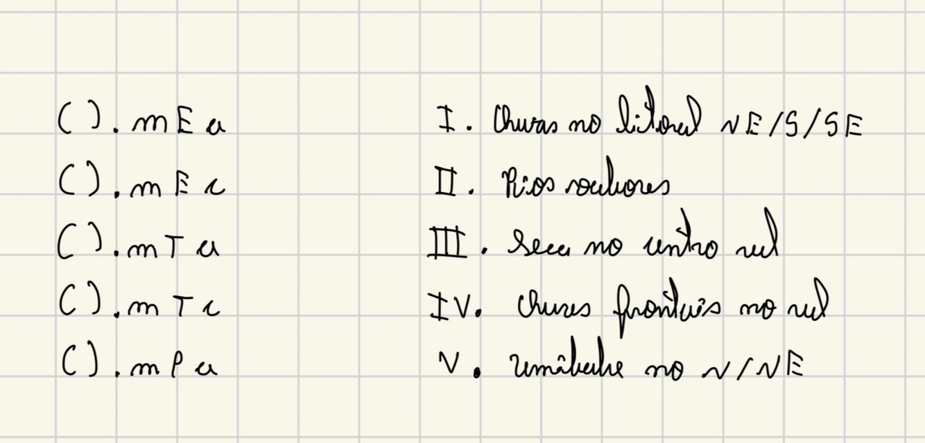 De onome das masssas de ar numeradas abaixo: