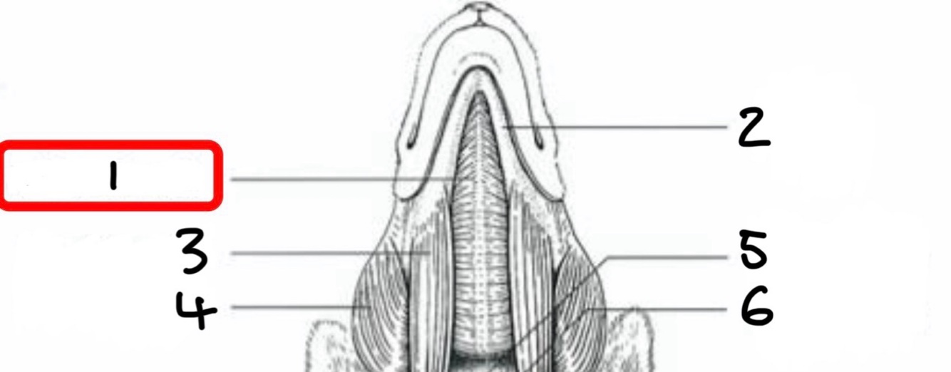 Mandibular symphysis, protrudes tongue and retracts tip