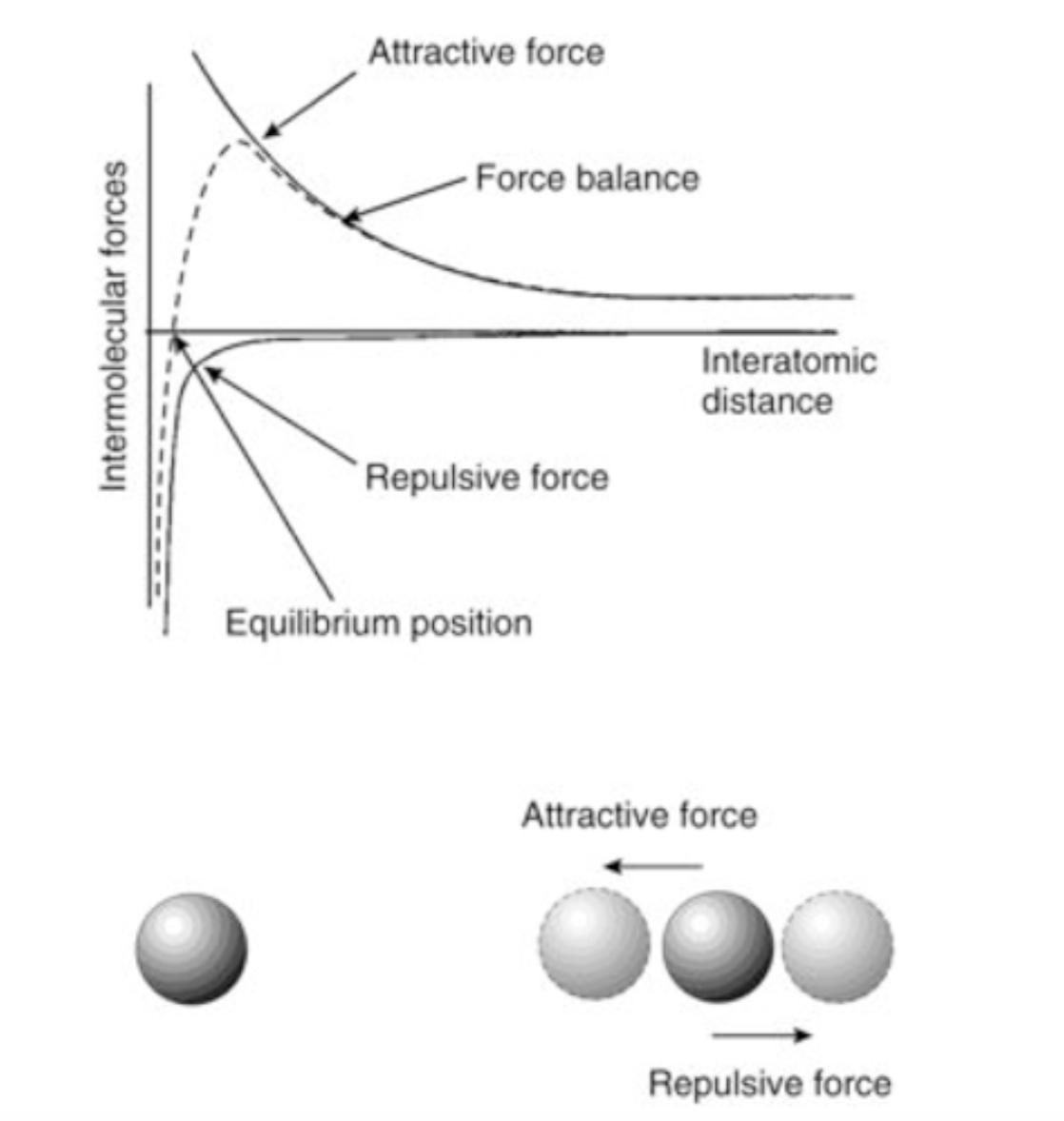 Understand that there is a equilibrium position, if you try to decrease the distance when at equilibrium you get repulsion, if you increase the distance between them you get attraction.