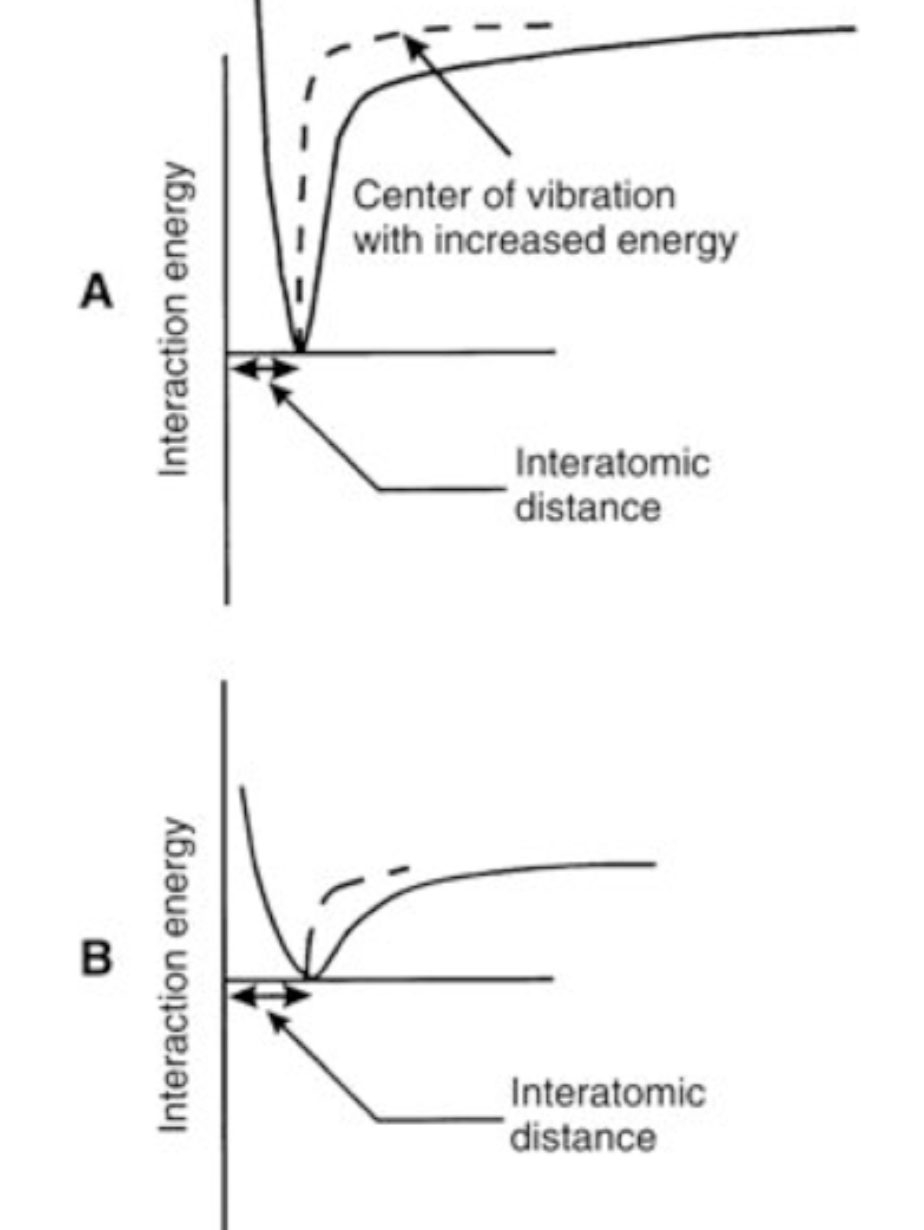 The shallower the curve the less energy it takes to seperate the atoms, the deeper the curve the more energy it takes to seperate the atoms.