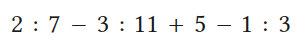 3 + 4 - 3 · (- 2) + (- 4) + 1 : 5