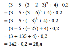 3 – 3 · (3 – 3 · 3)3 = 3 – 3 · (3 – 9)3 = 3 – 3 · (– 6)3 = 3 – 3 · (– 216) = 651
