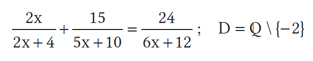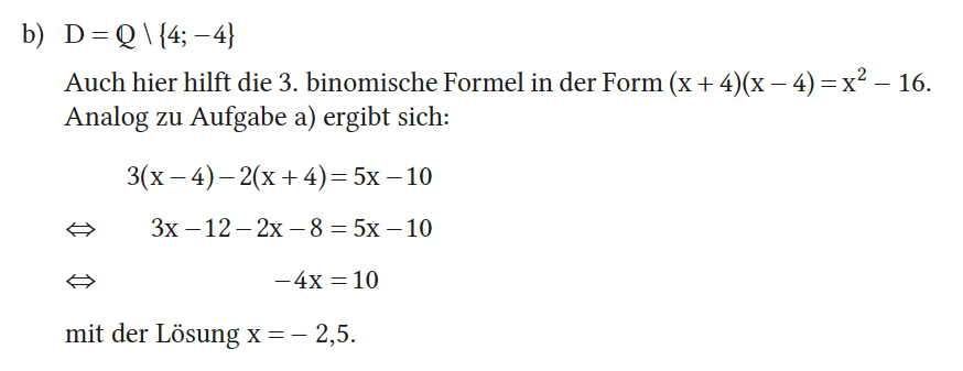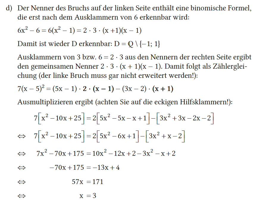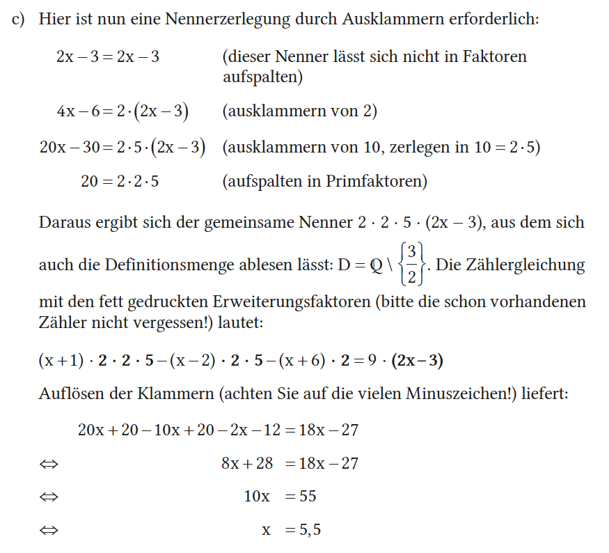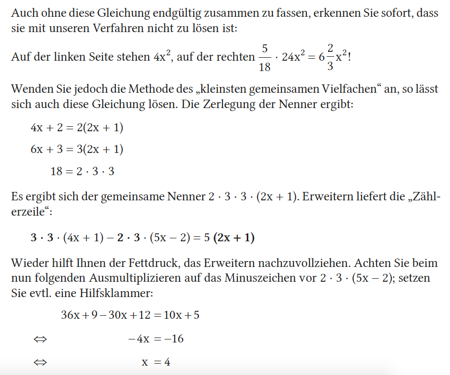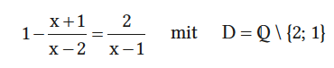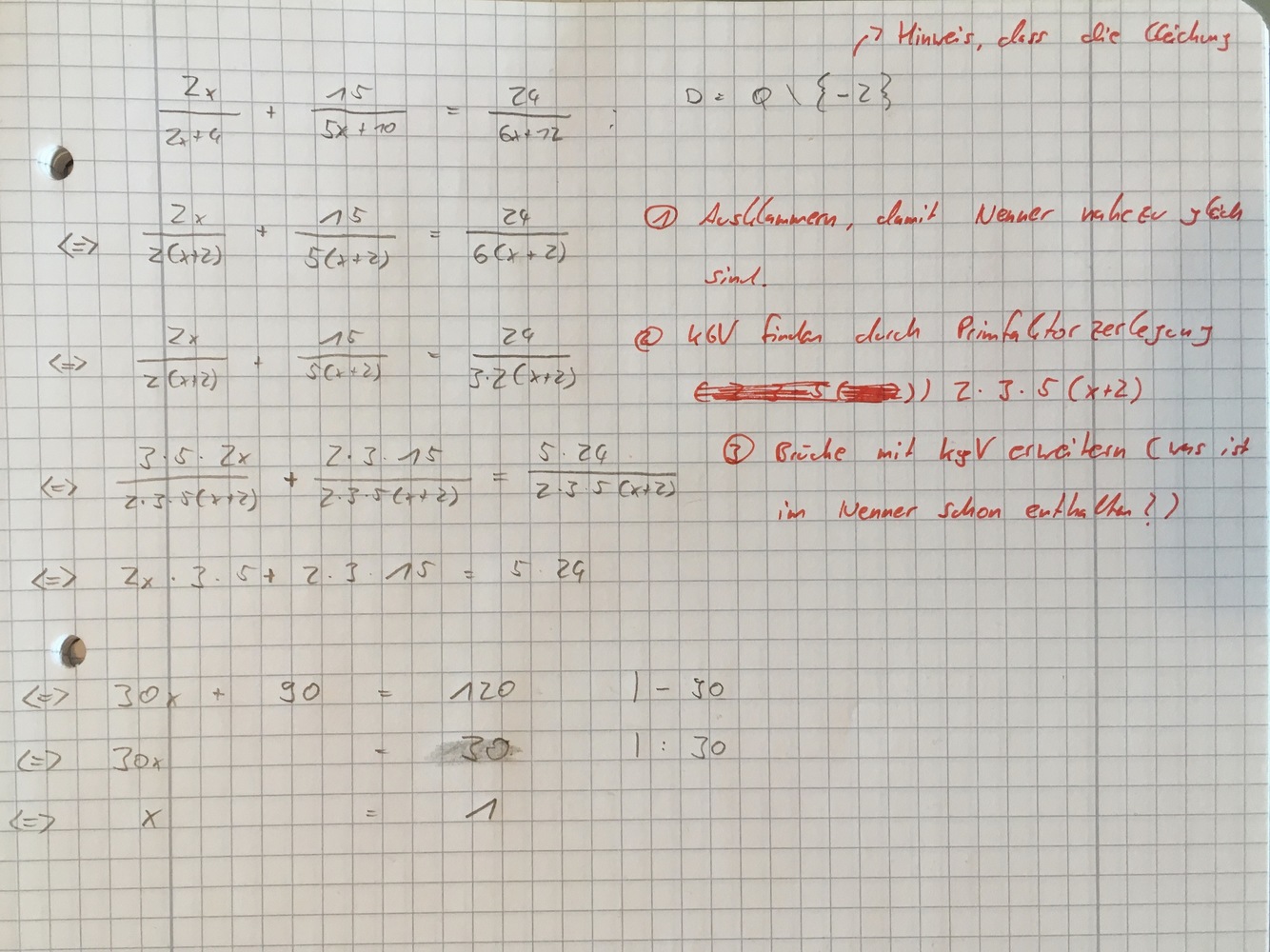 Ein Hinweis auf diesen Ansatz lässt sich bereits daraus ableiten, dass in der Definitionsmenge nur x = – 2 ausgeschlossen wurde, obwohl die Gleichung drei verschiedene Nenner aufweist!