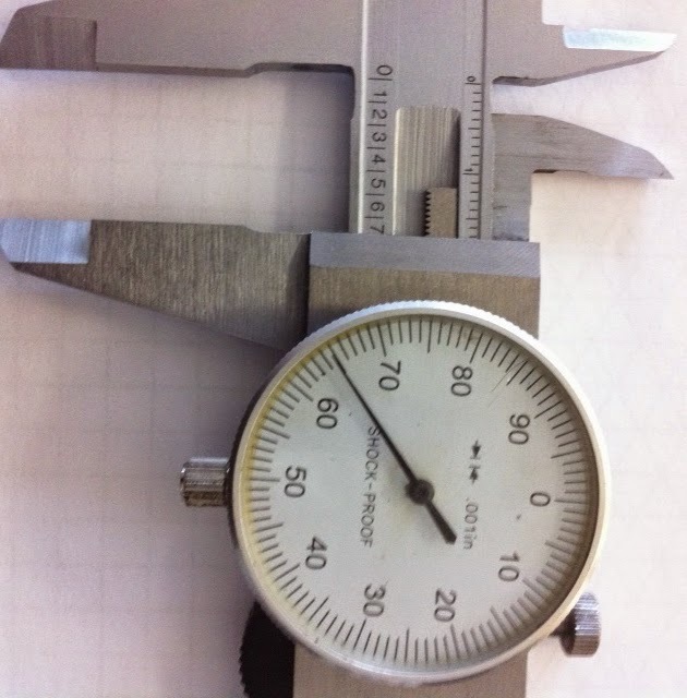 What measurement is being shown on the dial caliper?