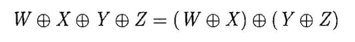 The excluse OR is an associative operator, as are all Boolean operators, so