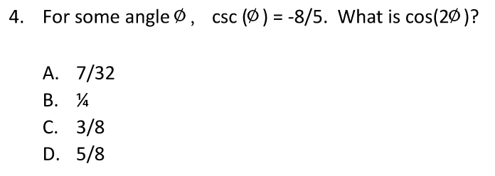 if csc(phi) = -8/5 then, sin(phi) = -5/8