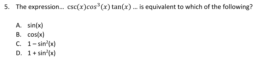 Use trig identity to convert everything to cos and sin.