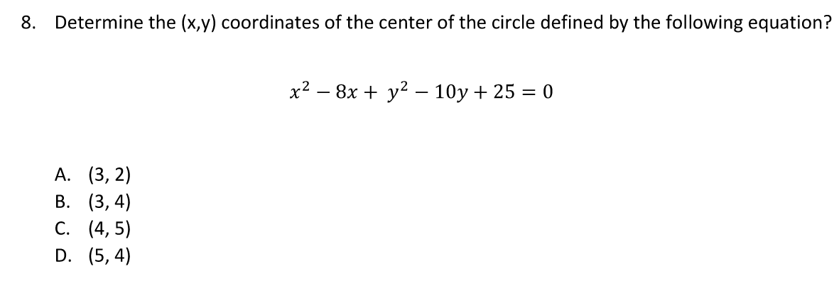 (x2 - 8x + 16) + (y2 - 10y + 25 ) = 0 + 16 + 25 - 25