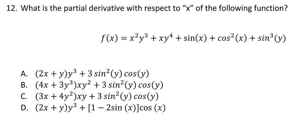 2xy3 + y4 + cos(x)+[-2sin(x)cos(x)] + 0