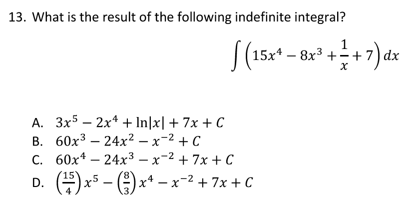The integral of 1/x is ln|x| so the answer has to be A.