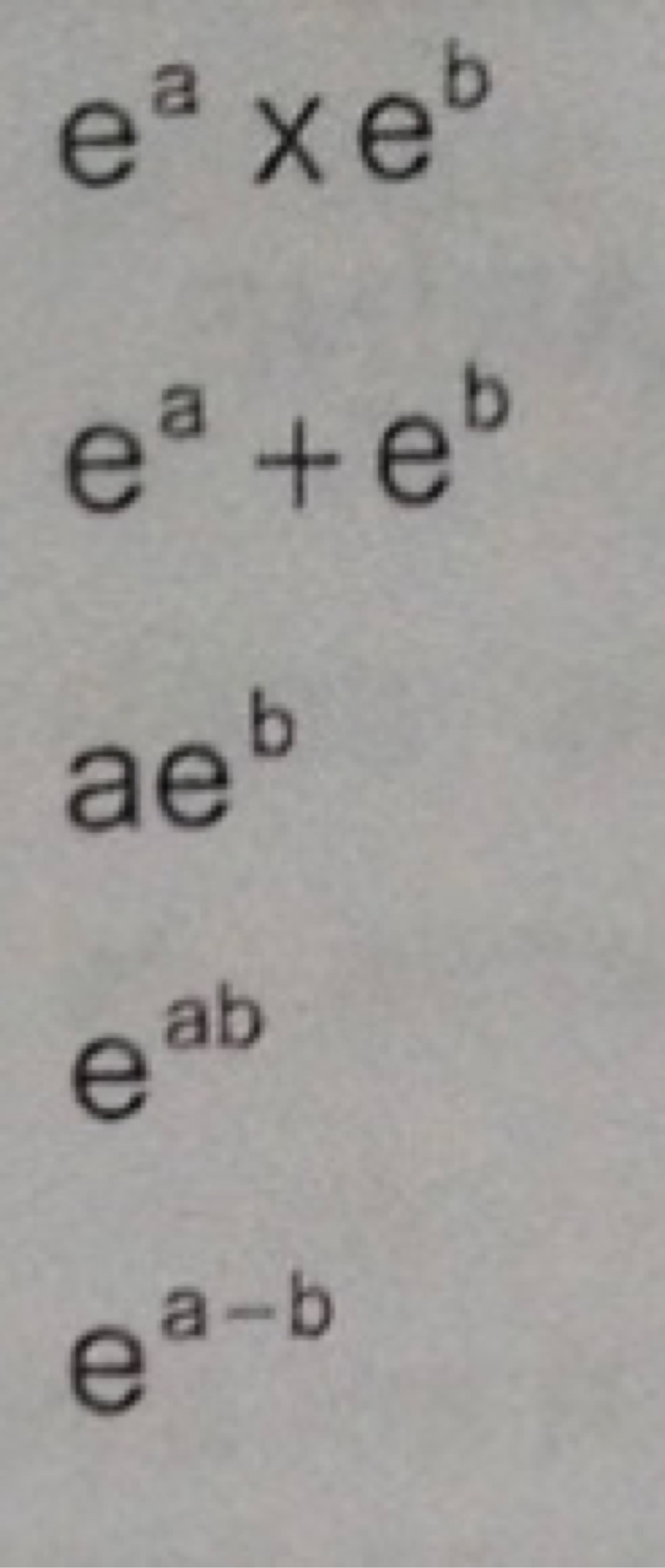 Parmi les propositions suivantes, indiquez l’autre expression de e a+b où a et b