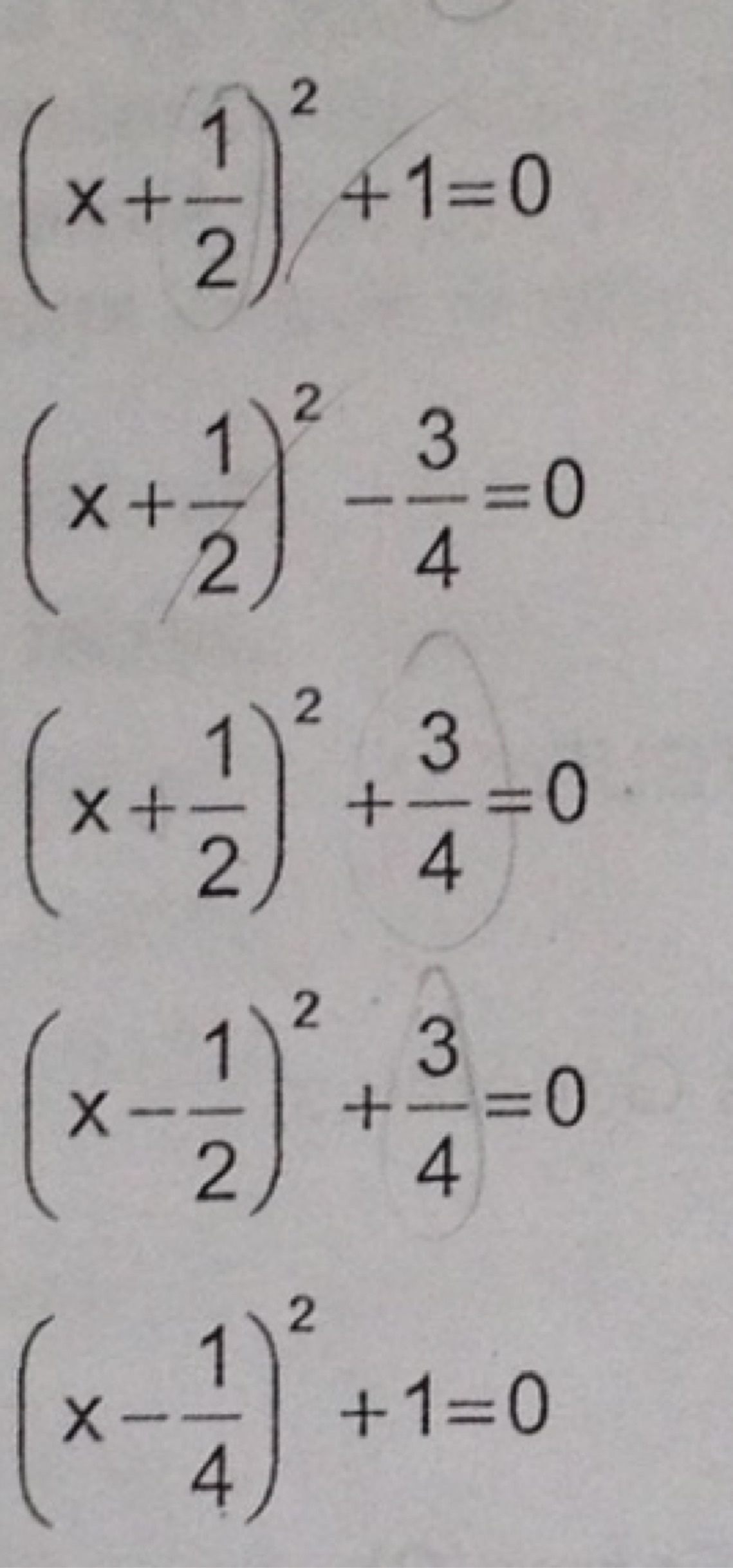 (X + 1/2)² + 3/4 = 0