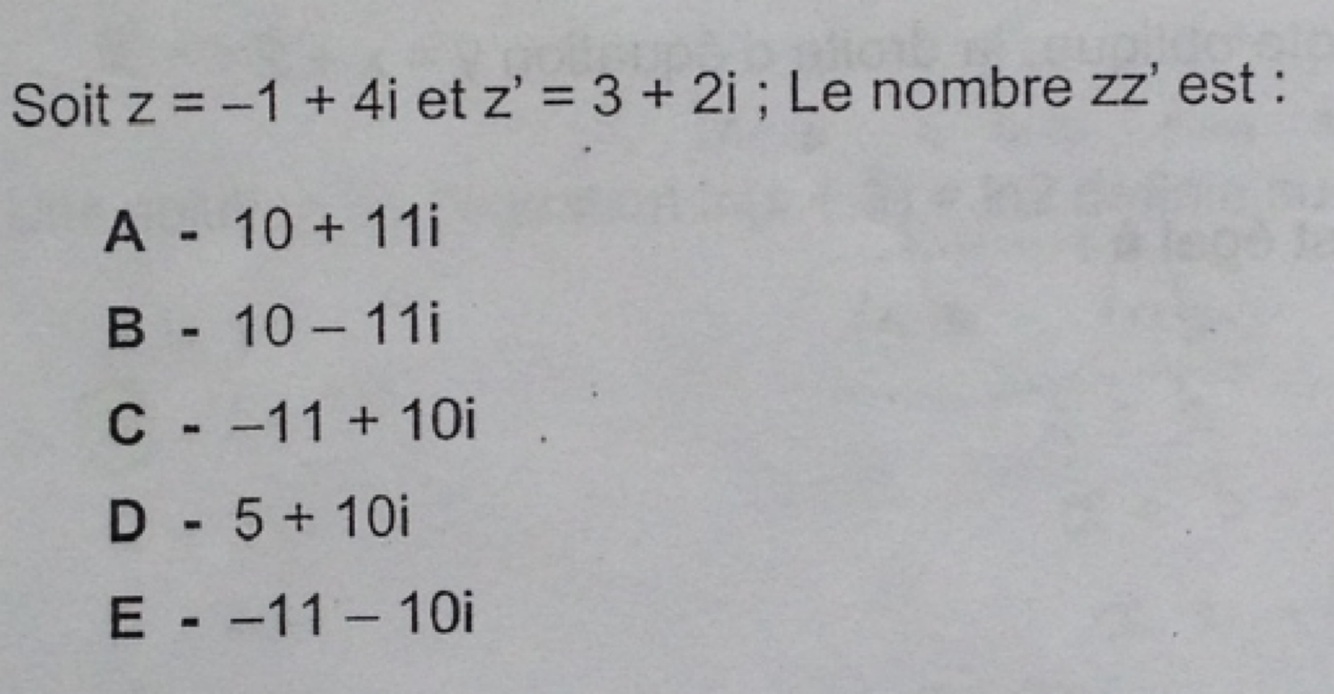 C - deux nombres complexes de parties réelles opposées