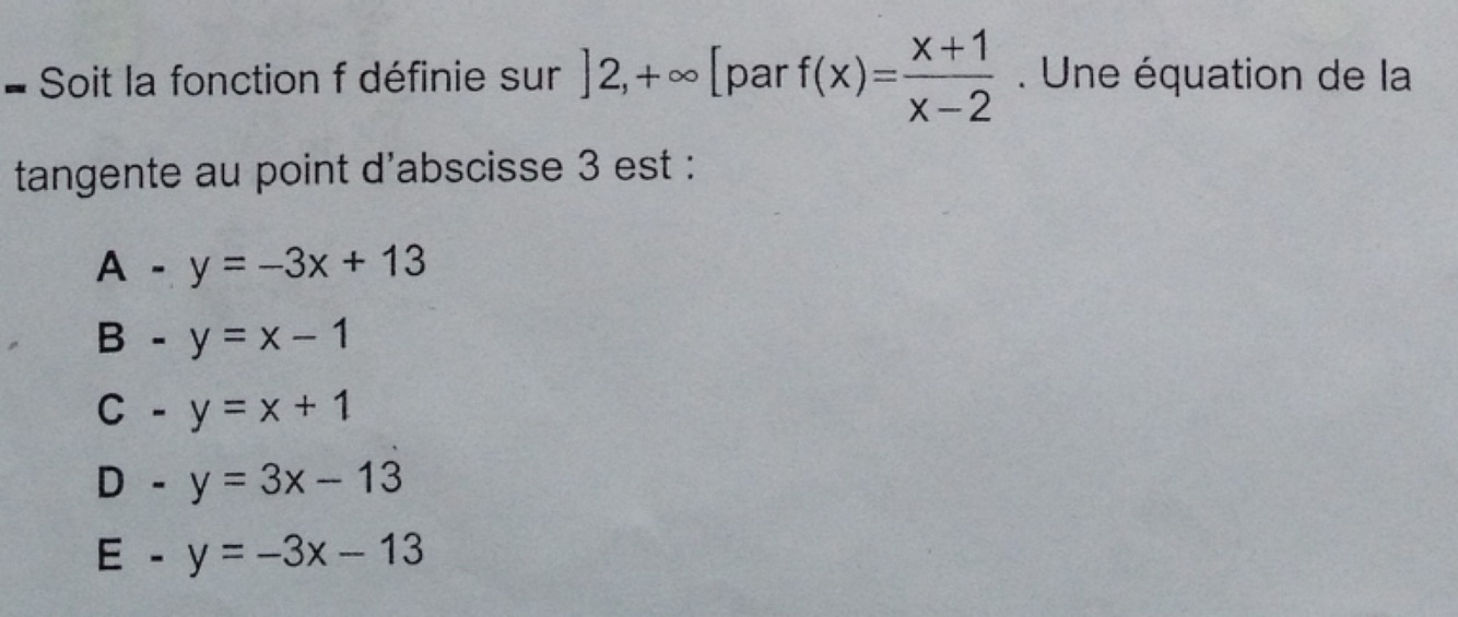 Soit f une fonction telle que (voir image) . La courbe C admet :