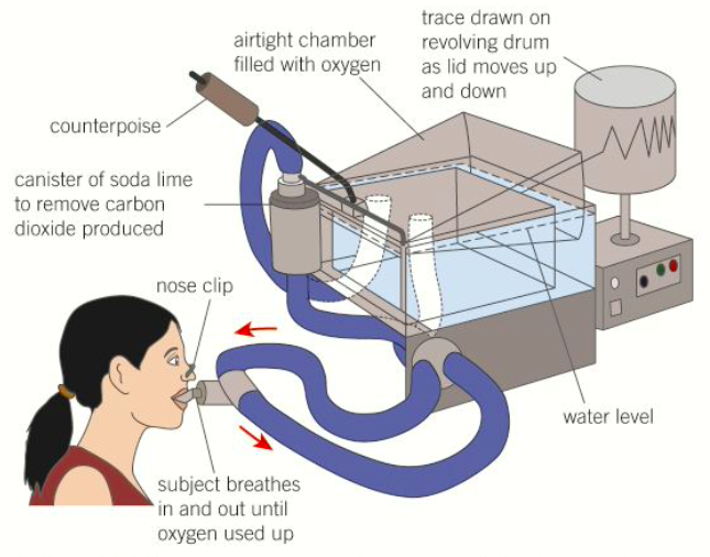 A spirometer is commonly used to measure different aspects of the lung volume, or to investigate breathing patterns. There are many different forms of spirometer but they all use the same principle