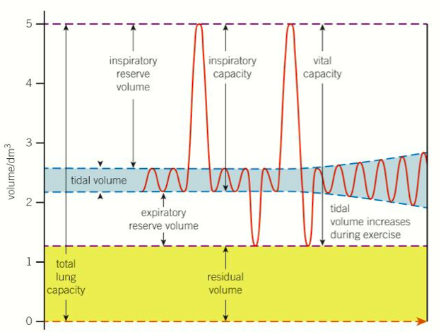 Ventilation rate = tidal volume x breathing rate (per minute)