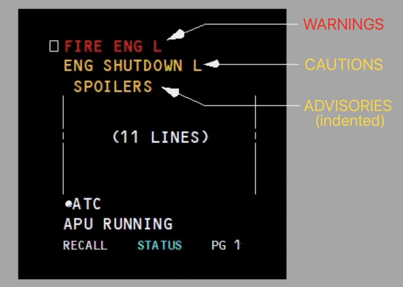 System faults displayed at Status level or Alert level should be resolved by MEL compliance or maintenance action prior to engine start.