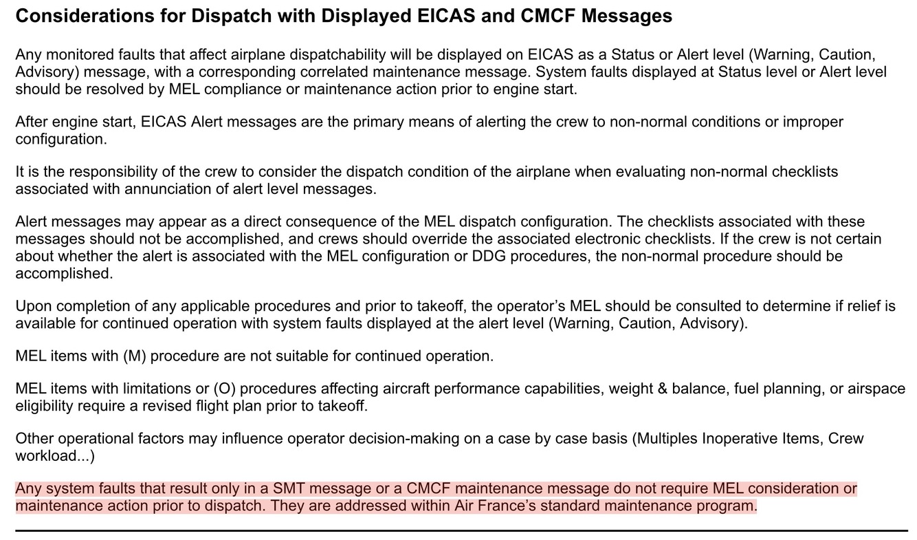 Any system faults that result only in a SMT1 message or CMCF2 maintenance message do not require MEL consideration or maintenance action prior to dispatch.