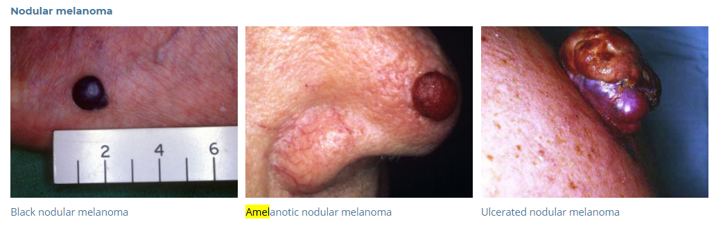 Note - Amelanotic melanomas are those that lacking pigment