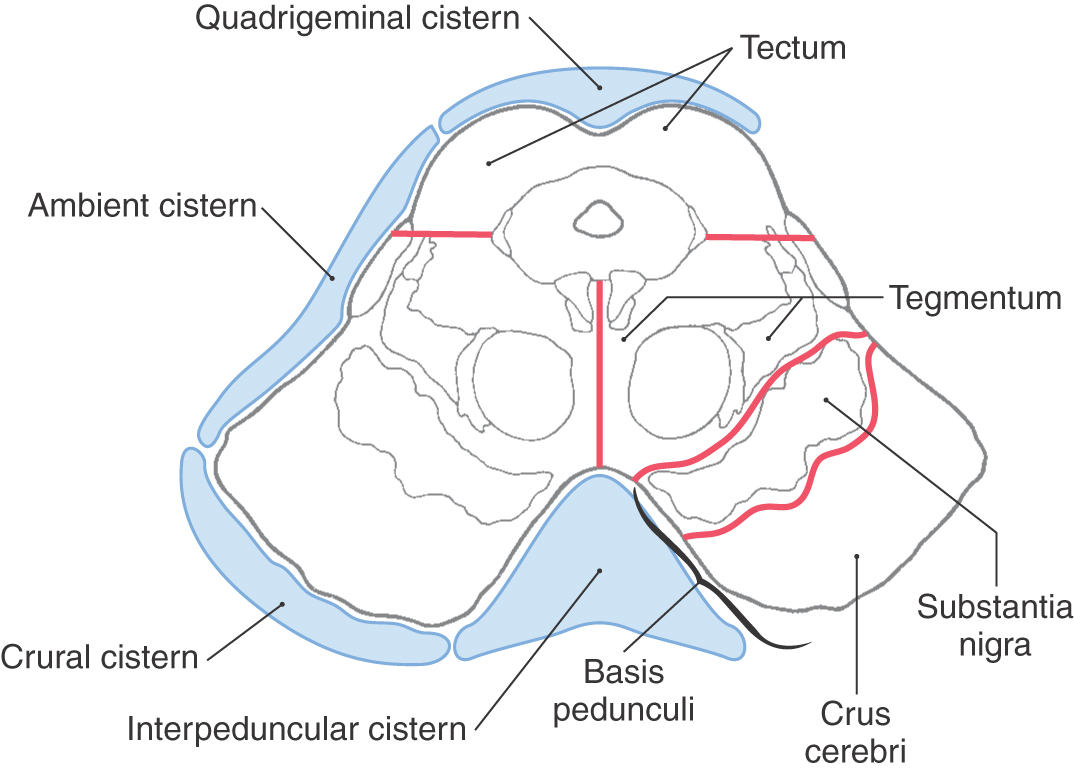 a perivascular potential space existing between the blood vessels and the leptominges as the vessels enter the CNS tissue