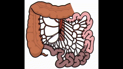 Narrowed mesenteric blood vessels due to atherosclerosis