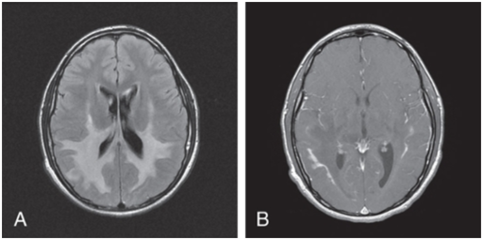 Investigations: Elevated VLCFAs, MRI Brain (occipital demyelination with leading edge enhancement after gadolinium administration), molecular genetic testing