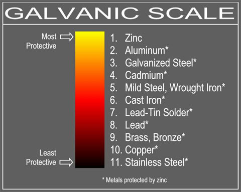 A mild electric current is set up between two metals during galvanic action, gradually corroding one while the other remians intact.