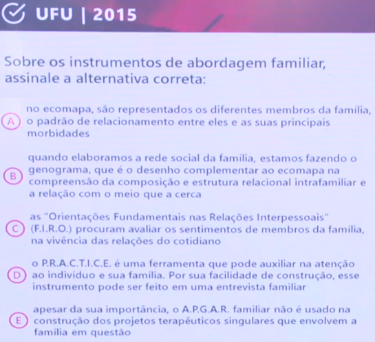 - Ecomapa: Avalia a relação do indivíduo com amigos, escola, trabalho, família, ou seja, com o seu meio.