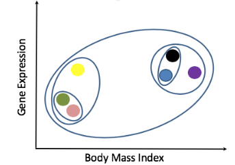 Distance represents how similar or different the level of expression for each gene is