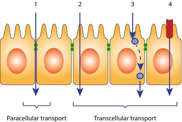 Paracellular transport refers to the transfer of substances across an epithelium by passing through the intercellular space between the cells.