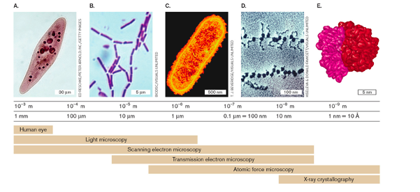 *eukaryotes range from 10-100 um, prok range from 0.4-10 um