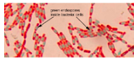 * in image the green is heterocyst which has been stained with a specific probe, the cells containing chlorophyl are autoflurorescing as red