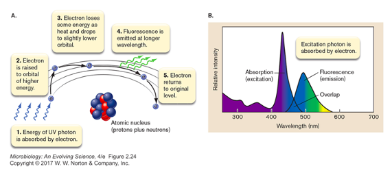 some cell components naturally fluoresce under specific light wavelengths (no stain required)