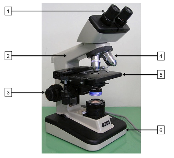 Label the following unmarked microscope components (numbered arrows) by matching it with the components provided (letters).