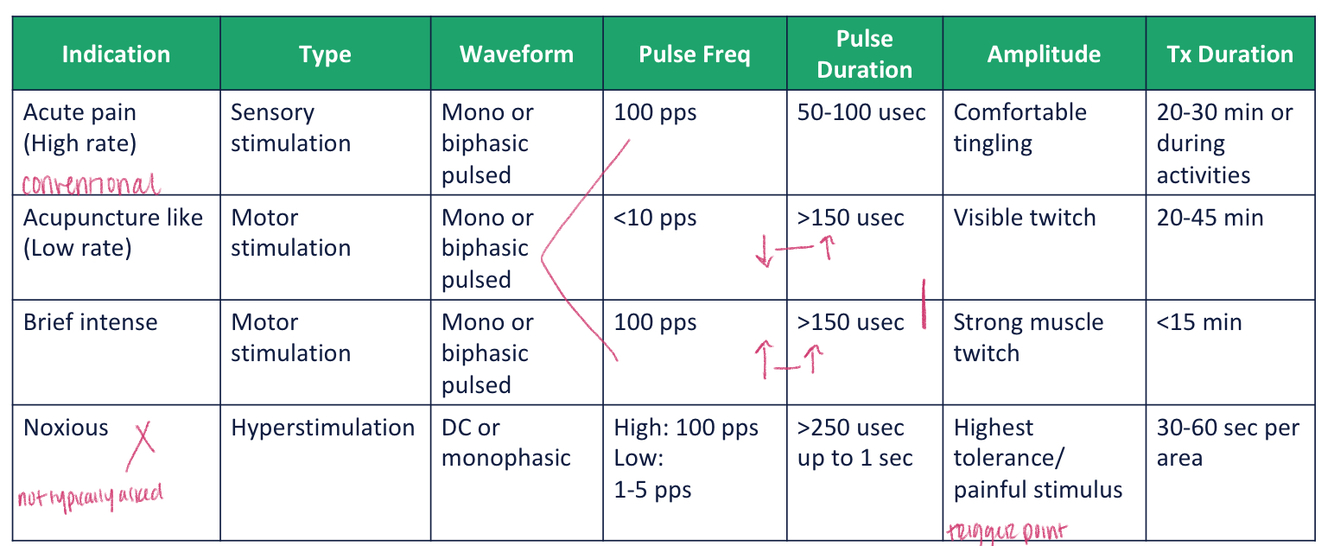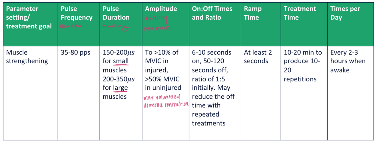 Electrical stimulation (NMES/FES) parameters for muscle contraction