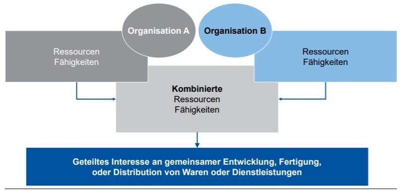 -formale und “freiwillige Vereinbarung zwischen Organisationen, im Rahmen derer Produkte Technologien oder Dienstleistungen ausgetauscht oder gemeinsam entwickelt und hergestellt werden. Strategische Allianzen können ein breites Spektrum an Motiven und Zielen verfolgen, verschiedene Formen annehmen und vertikaler sowie horizontaler Natur sein.”