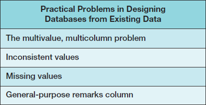 The multivalue, multicolumn problem occurs when multiple values of an attribute are stored in more than one column.