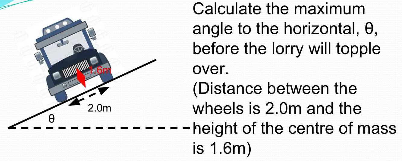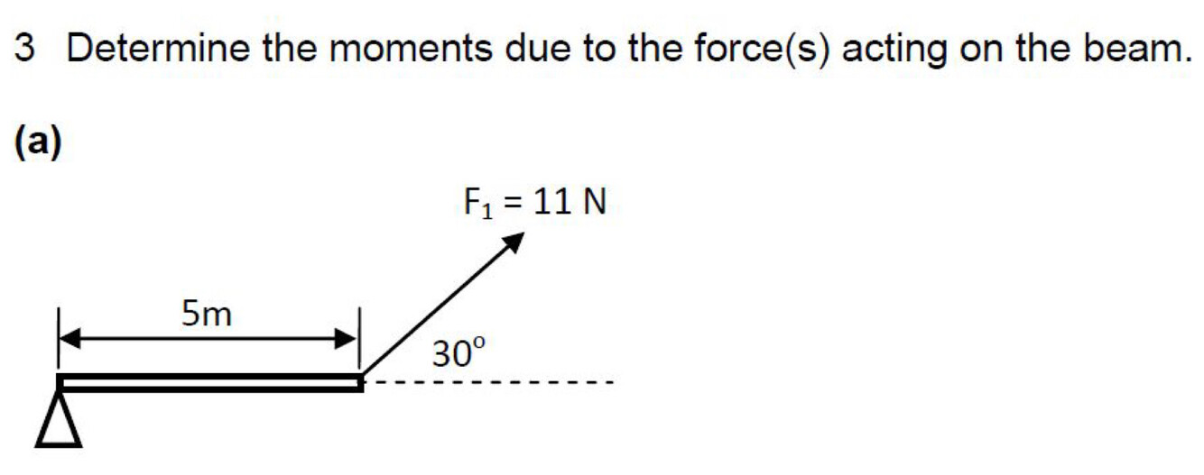 Moment = Force x Perpendicular Distance to the line of action of the force
