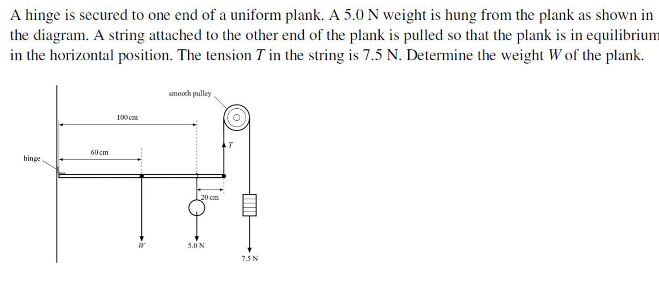 A 200N 3m long plank hangs over the edge of a cliff by 1m. How far can a man of 800N walk on the plank over the edge of the cliff before the plank tips over?