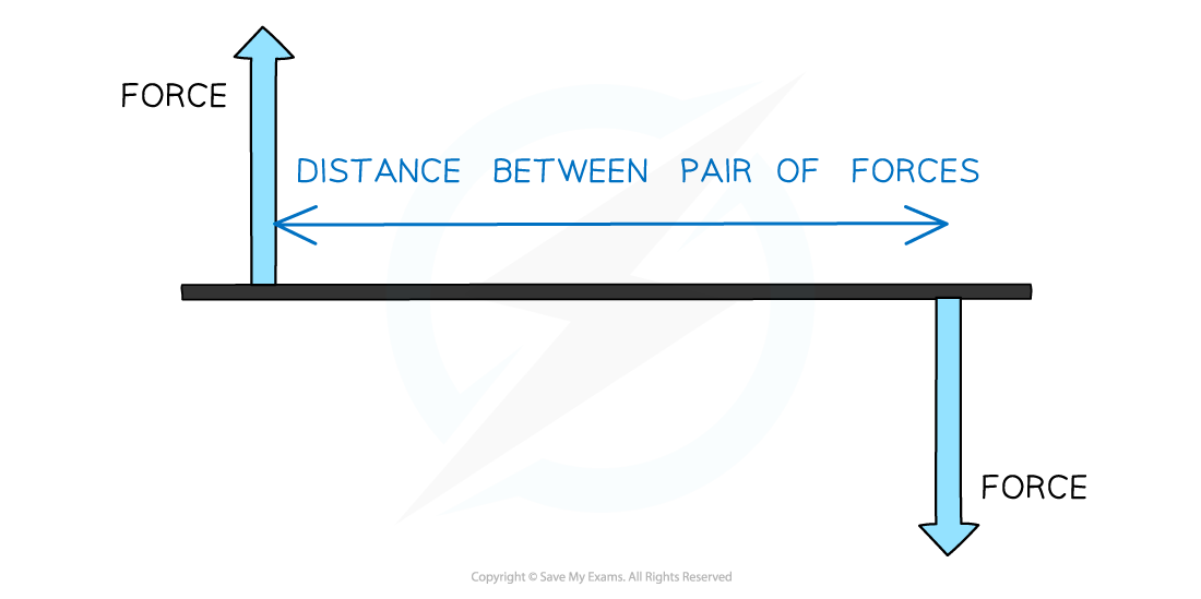 Torque of a couple = one of the forces x perpendicular separation between the 2 forces