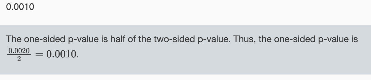 If the two-sided p-value of a given sample is 0.0020, what is the one-sided p-value for that sample mean?