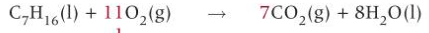 What is the balanced chemical equation for the complete combusion of heptane?