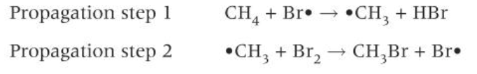 In the propagation stage, the reaction propagates through 2 propagation steps, a chain reaction:
