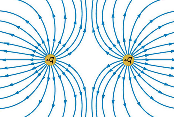 Draw a diagram showing the electric field between 2 positive charges