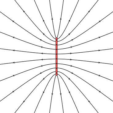 Draw a diagram showing the electric field around a positive bar