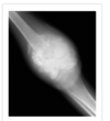 What type of bone cancer, 50 year old male. Radiograph findings vary based on the subtype, but half are lytic lesions, often lobular, and nearly three-quarters are accompanied by ring-and-arc or punctate calcifications,