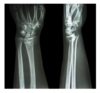 colles fracture fall on outstretched hand, dorsally displaced dinner fork deformity