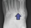 a fracture at the base of the 2nd metatarsal which is pathognomonic for the lisfranc injury